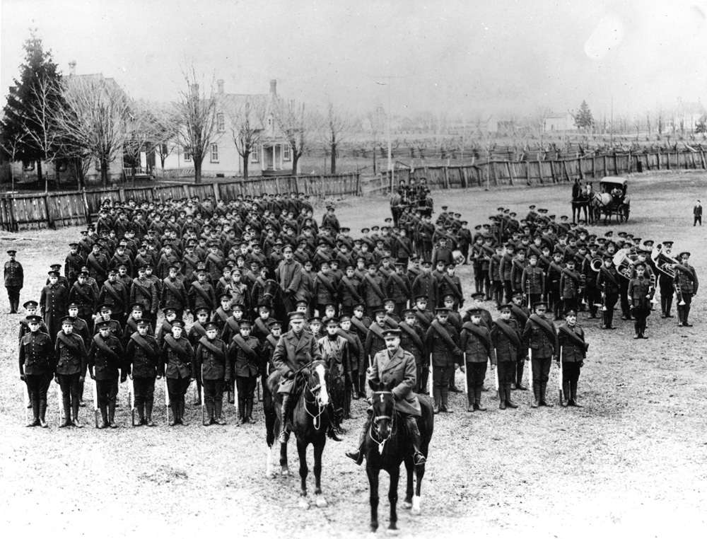 The next phase of the Battalion’s training came in early May when all companies were brought together for the first time at Beaverton for the upcoming county march. This march was covered in a previous article: https://tankmuseum.ca/blog-post/the-county-march/.