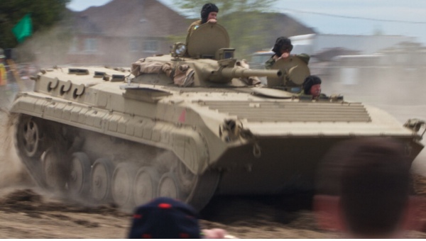 This is a Russian BMP-1. It is an Infantry Fighting Vehicle (IFV) Although it has tracks and a turret like a tank, it is too lightly armoured, too lightly armed, and its role is to carry an infantry squad into battle.