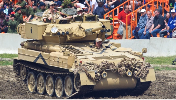 This is a British Scorpion Light Tank. It holds the World Record for fastes Tan EVER! It can go 82Kph (51 mph)
